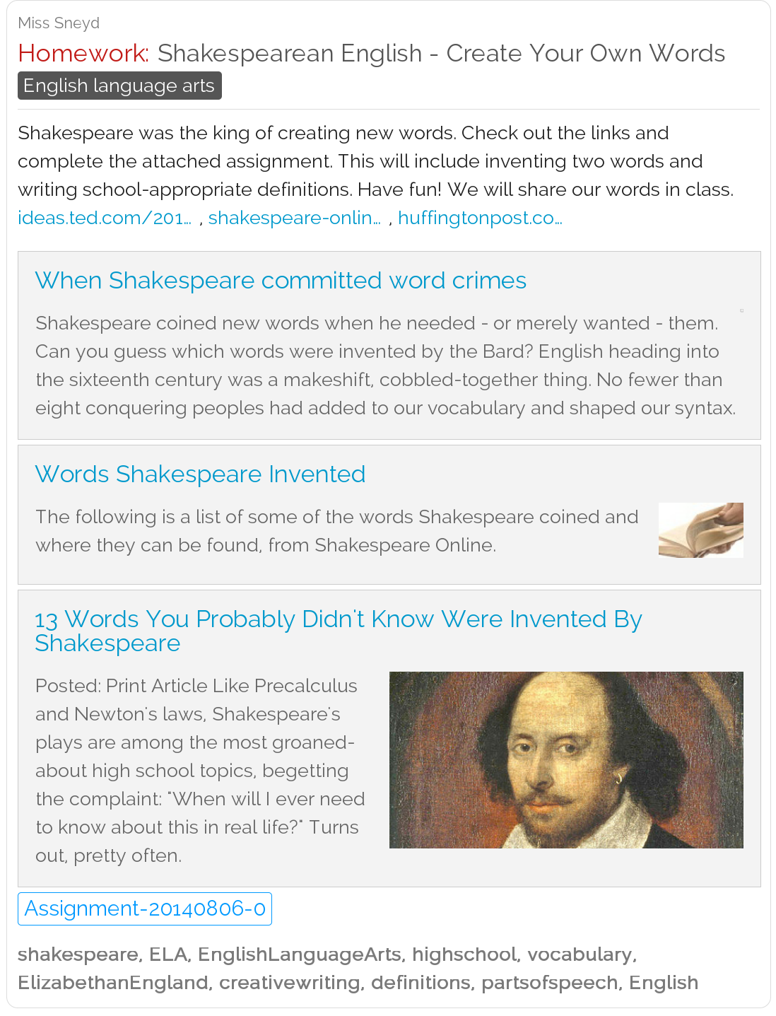 However, the “posts” in fact are micro (or nano) social networks. Each of these posts is in fact something called a SLIC (for Schoolfy Lesson Integrated Capsule) . Each SLIC contains: 1) content, 2) audience space, 3) discussion forum, 4) an optional examination area, and 5) an optional grading area. Here is an example: