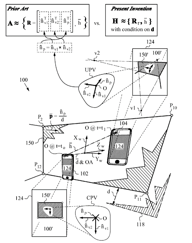 In Computer Vision, the homography is a 3×3 transformation between any two images of the same planar surface in space. Furthermore, if a the 3-D positions of a set of fiducials are known, the homography also determines the absolute position and orientation of the camera with respect to said set of fiducials.