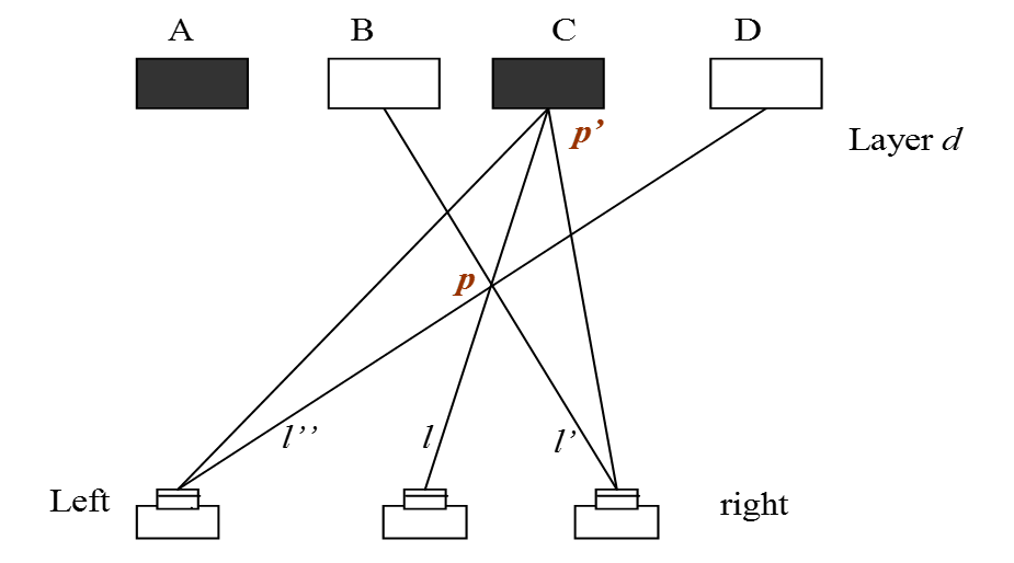 - Find a best layer for each light ray (pixel) based on the matching score (the winner takes all)