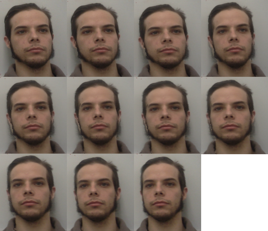 The produced results are quite good, and the procedure is indeed sparse in the number of camera views. This example shows reconstructed views from only two camera views (only the first and last faces are real photos):